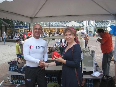 Hier überreiche ich "PD" an den Extremsportler Emin da Silva.
